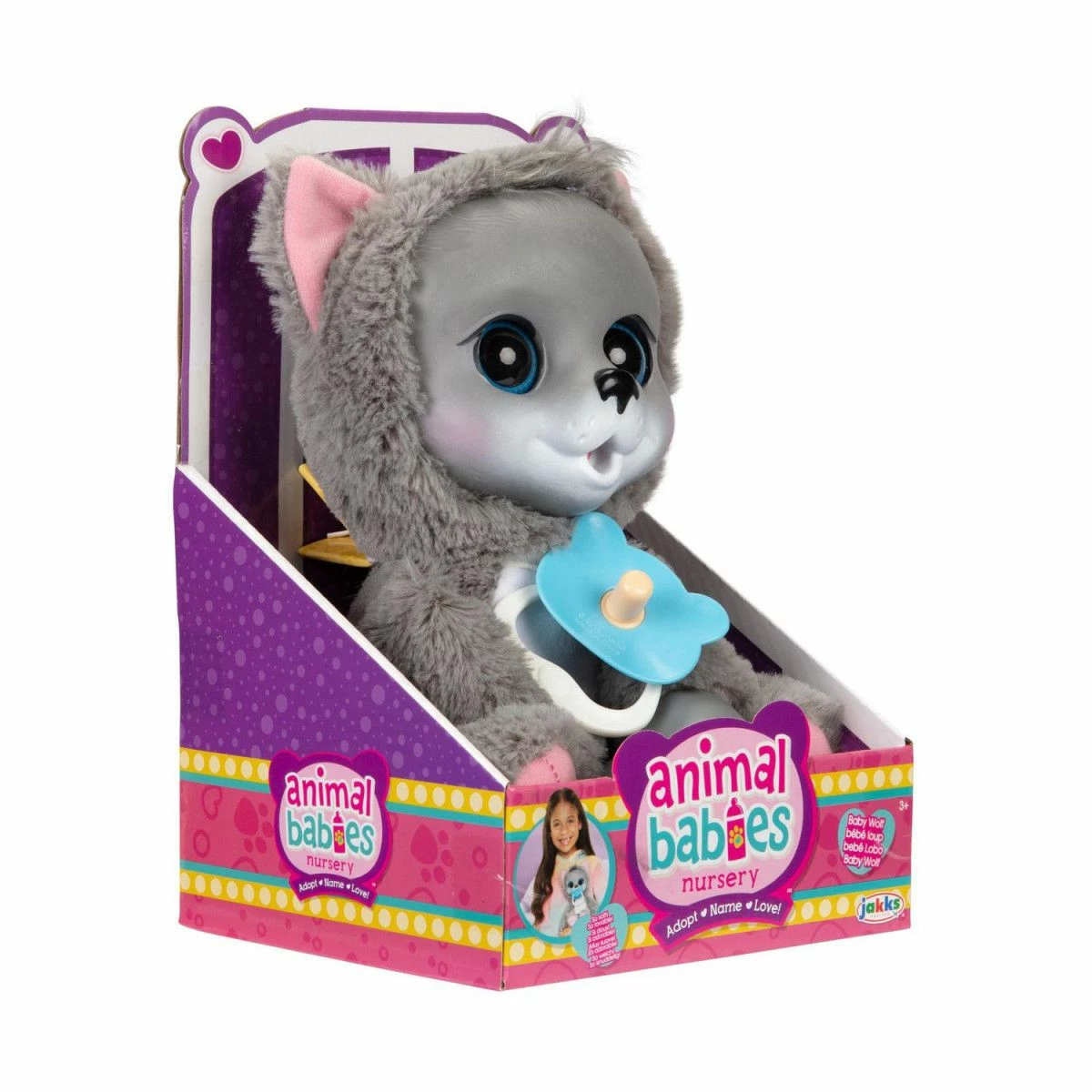 Animal Babies Nursery er den søteste samlingen av babydyr for barn å navngi, elske og pleie akkurat som en ekte baby! Med en høyde på omtrent 27 cm med myk pels og kosete kropper, er de den perfekte hyggelige følgesvenn. Spesialdesignede hender lar babyer suge tommelen, holde smokkene og til og med holde hender med alle andre Animal Babies Nursery dyr!