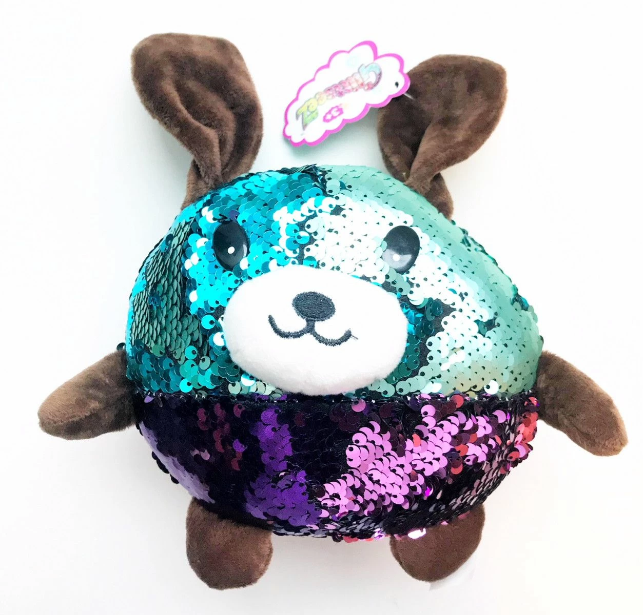Glitrende kosedyr med paljetter fra Glittseez. Vender du om paljettene endrer fargene seg.