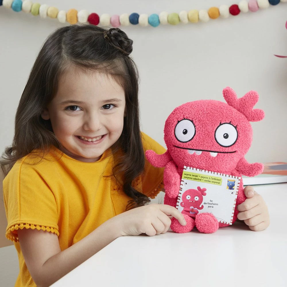 De søte og myke UglyDolls plysjbamsene er inspirert av den animerte musikalske komedien med samme navn. Moxy figuren måler ca. 24 cm i høyde og et lite klistremerke av Moxy følger også med. Anbefalt alder fra 3 år.